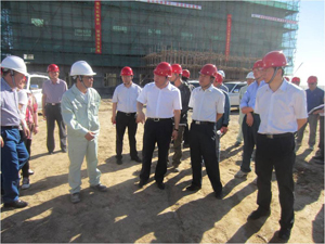 In mid-June, led by Xinjiang Uygur Autonomous Region government master Nuer.Baikeli, leaders from Autonomous Safety Supervision Bureau, Fire Armed Police Corps and other departments inspected the project site with Cathay Xinhua chairman Zhou Liguo. During the inspection, chairman Nuer.Baikeli did a detailed investigation about safety and civilization, project progress, construction quality, post-production and operation management, etc since the ASU started. And he made a positive evaluation of efforts and achievements achieved by our project department. The delegation encouraged project management team to go further, maintain ASU as a “benchmarking project", carry out "Safety Month" activities consistently and effectively, and safely and successfully complete air separation project with high quality.