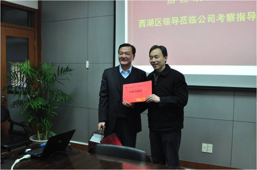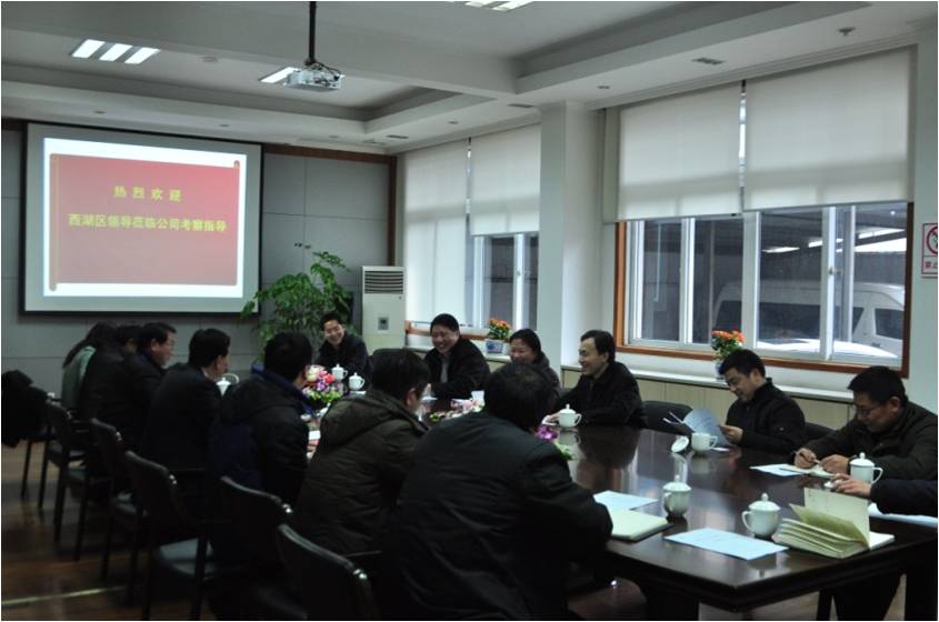 2011年2月17日,杭州市西湖区人大主任吴国良率区委、区人大、区政府有关部门领导一行八人莅临公司考察调研。公司有关领导和部门负责人参加了调研会。 调研会上,万军总经理就公司2010年总体情况以及2011年工作目标和重点、公司战略发展目标等作了专题汇报。 吴主任听取汇报后,高度评价了我公司在2010年所取得的成绩以及对西湖区所作的贡献,并表示要加强与企业的联络、优化服务,共同为西湖区的发展而努力。