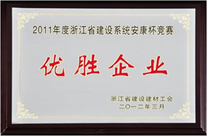 4月25日,我司荣获2011年度浙江省建设系统“安康杯”竞赛优胜企业荣誉称号。