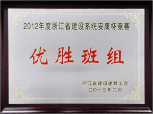 2月28日,我司太仓中化环保化工有限公司2万吨/年HFC-125配套混合工质建设项目组荣获2012年度浙江省建设建材系统“安康杯”竞赛优胜班组荣誉称号。