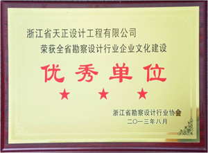 近日,根据浙江省勘察设计行业协会《关于表彰浙江省勘察设计行业企业文化建设优秀单位的通知》,我司被评为浙江省勘察设计行业企业文化建设优秀单位。
