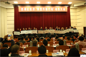 1月11日,西湖区召开经济“转型升级行动”动员大会,旨在表彰对西湖经济社会发展作出特殊贡献的企业。公司荣获2016年度西湖区企业经济发展贡献奖,董事长万军参会并上台领奖。